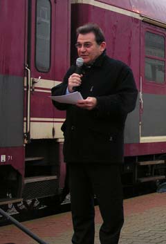 Als Vertreter der Jüdischen Kultusgemeinde der Rheinpfalz, nehme ich gerne die Gelegenheit wahr, heute und hier das Wort zu ergreifen. Diese ungewöhnliche Ausstellung, ist den deportierten Kindern und Jugendlichen aus ganz Europa gewidmet. Von so genannten Deportationsbahnhöfen aus wurden über 12.000 Kinder und Jugendliche aus Deutschland in die Vernichtungslager verschleppt. Mehr als eine Million Kinder und Jugendliche, mehrheitlich aus jüdischen Elternhäusern aus ganz Europa, kehrten nicht zurück. Der Zug der Erinnerung soll in mehr als 40 deutschen Städten Halt machen und dabei über 3000 Kilometer zurücklegen, bis er in der Gedenkstätte Auschwitz, etwa Mitte 2008, eintreffen soll. Beschämend ist in diesem Zusammenhang die Tatsache, dass der Verein „Zug der Erinnerung“ neben den Kosten für die Lokomotive und die Wagen, die für die Dauer der Ausstellung angemietet wurden, auch noch für die Schienennutzung bezahlen muss!