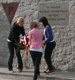 GÖRLITZ/ZGORZELEC - "Den Opfern der polnischen Nation" lautet die Inschrift auf dem Kranz der gestern am Mahnmal für die Opfer des Nationalsozialismus in Zgorzelec niedergelegt wurde. Die Gedenkfeier bildete den Auftakt für den schwierigen Grenzübertritt nach Polen. Der stellvertretende Bürgermeister der Stadt, Herr Radosław Baranowski, erinnerte an das besondere Leid, das Deutsche nach Polen gebracht haben. Im Namen der Jugendlichen sprach der 15jährige Ramòn Plhak aus Erfurt die Verantwortung der Deutschen an: