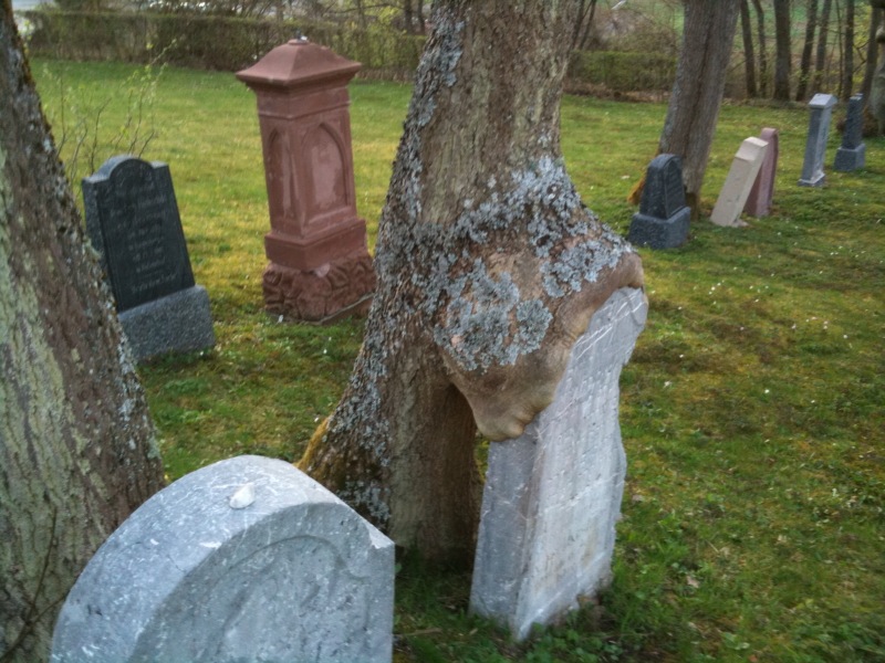 Wie fast überall in Deutschland hat auch diese ländliche Region rassistische Verbrechen zu beklagen. Davon zeugen die zerbrochenen und teilweise wieder hergestellten Grabtafeln auf dem kleinen jüdischen Friedhof in Blumenthal (Foto).