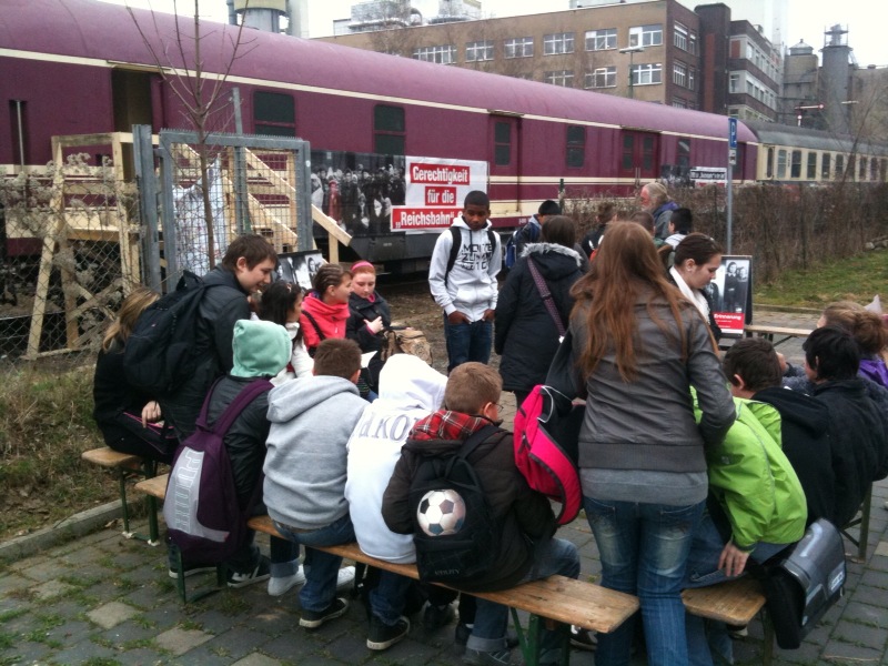 Die mobile Ausstellung ist dicht belegt: Dutzende Schulklassen und gesellschaftlichen Gruppen kommen an den Busbahnhof, wo dem Trägerverein das Privatgleis der Rhein-Sieg Eisenbahn (RSE) umstandslos zur Verfügung gestellt wurde (Auch für Einzelbesucher täglich von 08.30 Uhr bis 20.00 Uhr). Nach der Unterstützung durch die Firma WEST ist es das zweite Mal auf der gegenwärtigen Fahrt, daß private Bahnunternehmen dem "Zug der Erinnerung" unbürokratisch helfen.