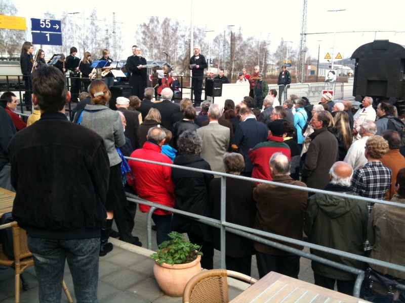 "Bei den Deportationen des DB-Vorgängers 'Deutsche Reichsbahn' verloren die Menschen nicht 10 Minuten, sie verloren ihr ganzes Leben", sagte der Vertreter des Trägervereins in einer Einführung für die anwesenden Schulklassen. "Sind diese Opfer so wenig wert, daß eine Verspätung von 10 Minuten wichtiger ist?"