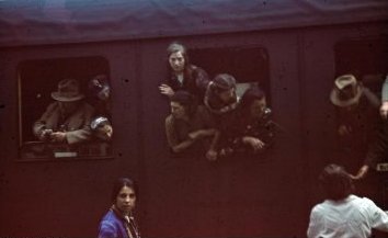 Die Bahnhofsfeste der DB AG wirken unangebracht, solange das deutsche Staatsunternehmen die Opfer seines Bahnvorgängers nicht angemessen ehrt. Dazu gehört die Restitution der Überlebenden ebenso wie ein unauslöschliches Gedenken auf den deutschen Bahnhöfen. Sie waren Ausgangs- oder Durchgangsorte fast sämtlicher Massendeportationen. Ohne die Zubringertätigkeit der "Deutschen Reichsbahn" wäre das Großverbrechen unmöglich gewesen (Foto: Jüdische Deportierte aus Ungarn im Mai 1944 in Auschwitz vor ihrer Ermordung. Im Hintergrund die deutschen Güterwagen, die sie nach Auschwitz brachten).