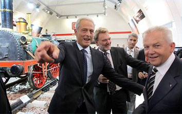 Bundesverkehrsminister Ramsauer (links) und Bahnchef Grube (rechts) feiern 175 Jahre deutsches Eisenbahnwesen. Das Jubiläum soll Nürnberg und Fürth, die Städte der ersten regulären Schienenverbindung, in Partylaune versetzen. Im Musical "Bahn frei" hat die "Ludwigsbahn-Samba" Premiere und der "Lampenfieber-Blues" lässt die "Goldenen Zwanziger Jahre" auferstehen. Auf Großleinwänden präsentiert das Nürnberger Planetarium die "Geschichte der Mobilität" und versetzt das Publikum in einen "Rausch der Bilder" (Nürnberger Nachrichten). Die Erinnerung an 3 Millionen Menschen, die von den deutschen Eisenbahnen in den Tod gefahren wurden, lässt sich mit der Nürnberger Partylaune nicht vereinbaren. Das Großereignis, das am 7. Dezember seinen Höhepunkt erreichen soll, wirkt obszön.