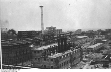 Ohne das Geschäftsinteresse der deutschen Industrie und die Fertigkeiten deutscher Ingenieure und Arbeiter wäre die NS-Massenvernichtung unmöglich gewesen. Das Foto zeigt den Industriekomplex Auschwitz-Monowitz, wo der Chemiegigant IG Farben u.a. das Gas Zyklon B herstellte. Produktionszentrum für Zyklon B war die Stadt Dessau. Etwa 1 Million Häftlinge wurden in den deutschen KZ mit Zyklon B ermordet. Seit Sonntag steht der "Zug der Erinnerung" in Dessau, um der deportierten Kinder und Jugendlichen zu gedenken (Städte und Namen). Die mit der "Reichsbahn" (Gutachten) verschleppten Dessauer Kinder endeten u.a. in Treblinka und Auschwitz. Dort kam das in ihrer Heimatstadt produzierte Gas zum Einsatz.