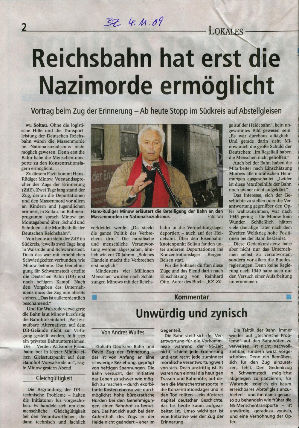 „Fehlende Kooperation (pdf) Interview mit Hans-Rüdiger Minow über den „Zug