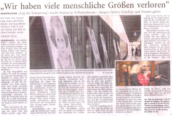 Zug der Erinnerung fährt nach Auschwitz - Mobile Ausstellung erinnert an von Nazis verschleppte und getötete Kinder. Waggons halten in über 30 Städten. Von Heide Platen